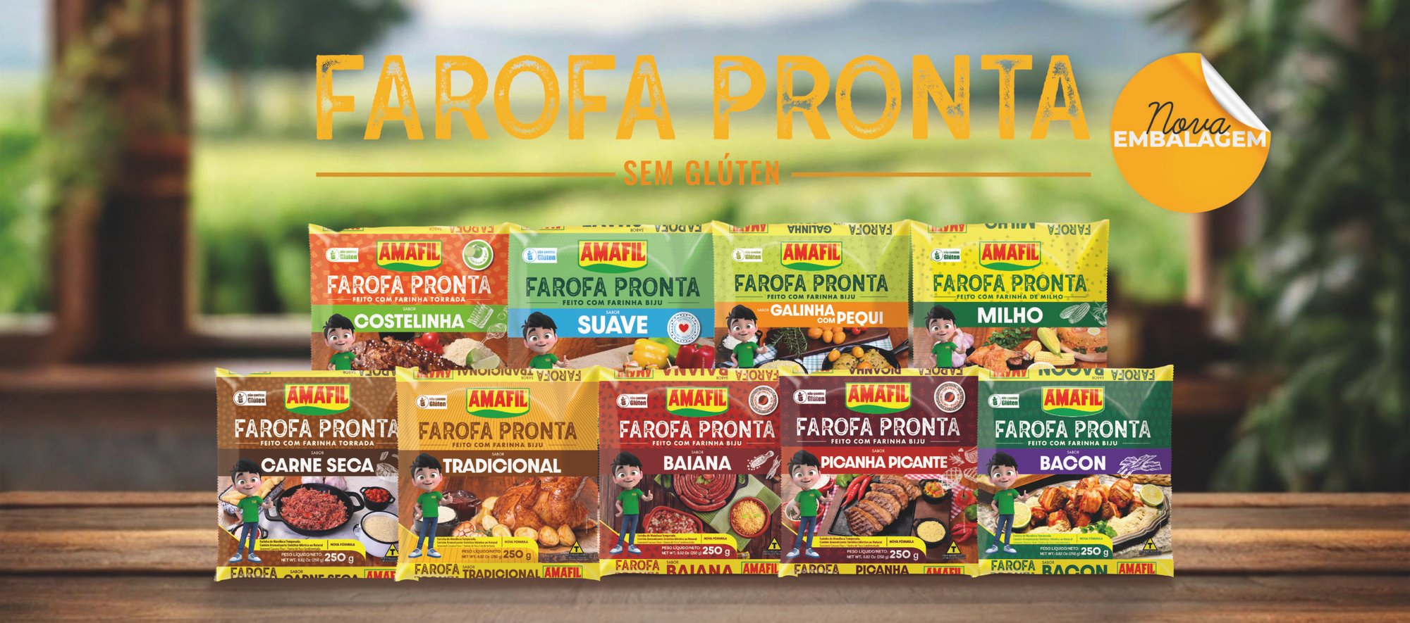 Com mais de 60 produtos no portfólio, a Amafil é referência na culinária brasileira. Entre os destaques estão o Polvilho Doce e Azedo, a Fécula de Mandioca, as Farinhas e a Farofa Pronta, ingredientes essenciais para receitas típicas que encantam cozinheiros e cozinheiras em todo o país.
