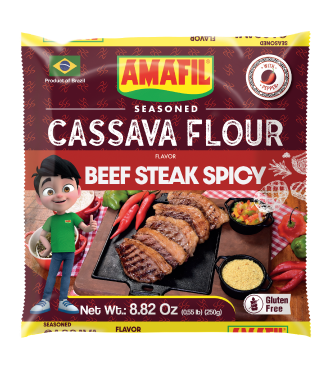 The Seasoned Cassava Flour Amafil is a typical Brazilian product considered a side dish that you can eat with rice, barbecue, beans, meat, soups is a ready product to eat, with a unic flavor from Brasil.